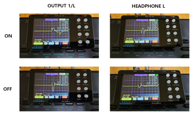 전원부를 완전해 개조한 뒤 새로 생긴 문제가 있다. 전원을 ON/OFF할 때 약간의 팝업 노이즈가 발생한다. 오실로스코프로 파형을 기록하여 아래에 사진을 남겼다. X축이 1V/div인 것을 감안하면 해결이 필요한 것 같다. 전원 보드를 개조하면서 mute drive 회로와 궁합이 잘 맞지 않는 것 같다. 두 종류의 전원을 순차적으로 들어오게 만들어 보자.