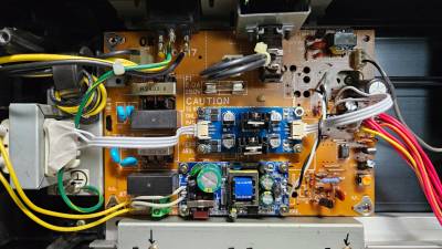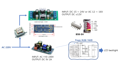 (2025-04-12) 전원장치를 전부 뜯어고쳤다. 이 작업 결과 강압트랜스포머를 쓰지 않고 220V로 작동할 수 있게 되었고, LCD 조명도 해결하였다. 그러나… 잡음은 별로 나아진 것 같지 않다. 아날로그 회로의 +/-12V의 약간의 불균형은 별 문제가 되지 않는 것 같다. 앞으로 무엇을 개선해야 될지 모르겠다. 헤드폰 출력으로 느껴지는 잡음은 매우 크지만, output 1&2의 출력을 PA amp로 증폭하면 아주 쓰지 못할 수준은 아니다.