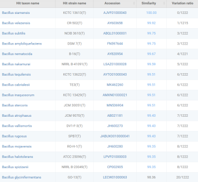 결과: NZ_CP045926.1 Bacillus velezensis strain AL7 chromosome, complete genome